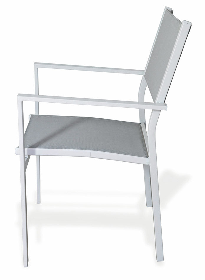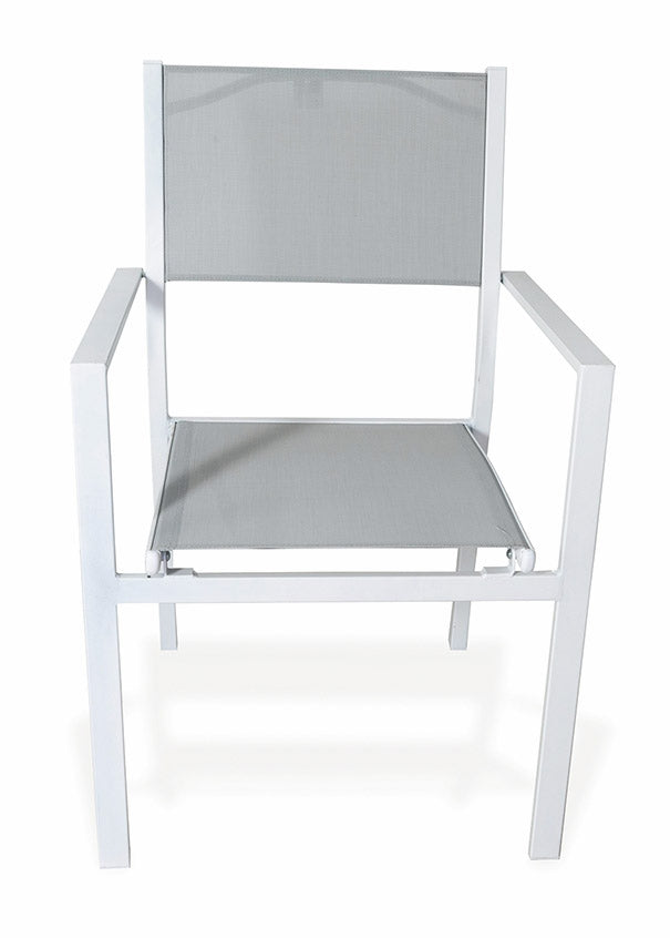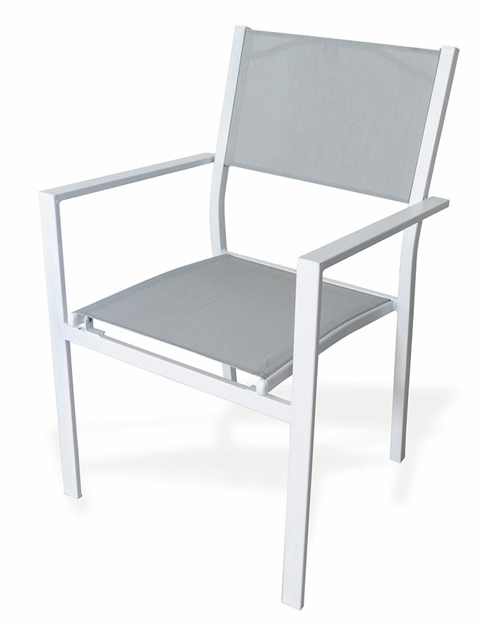 Chaise de jardin Soriani en acier et textilène avec accoudoirs blancs et gris