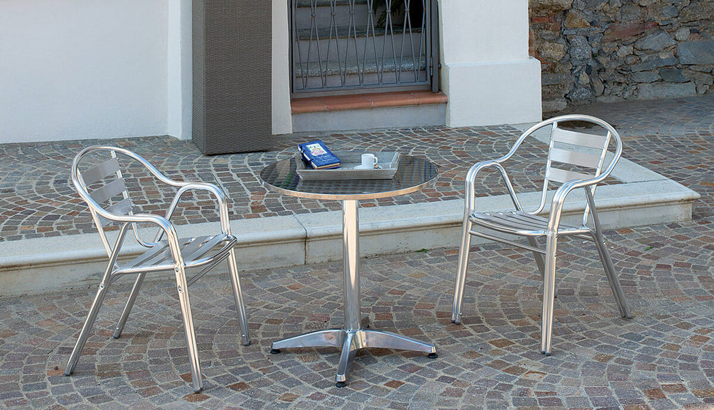 Chaise de jardin en double tube d'aluminium à lattes. Empilable.