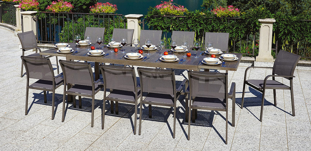 Chaise de jardin en aluminium effet bois et textilène Vorghini Crans-Montana Gris