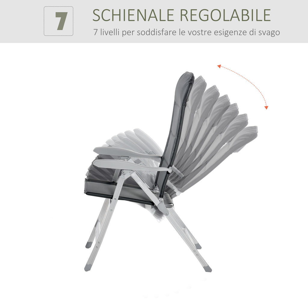 Sedia da Pesca Pieghevole con Schienale Regolabile 75x61,5x76-115 cm in Alluminio e Poliestere Grigio