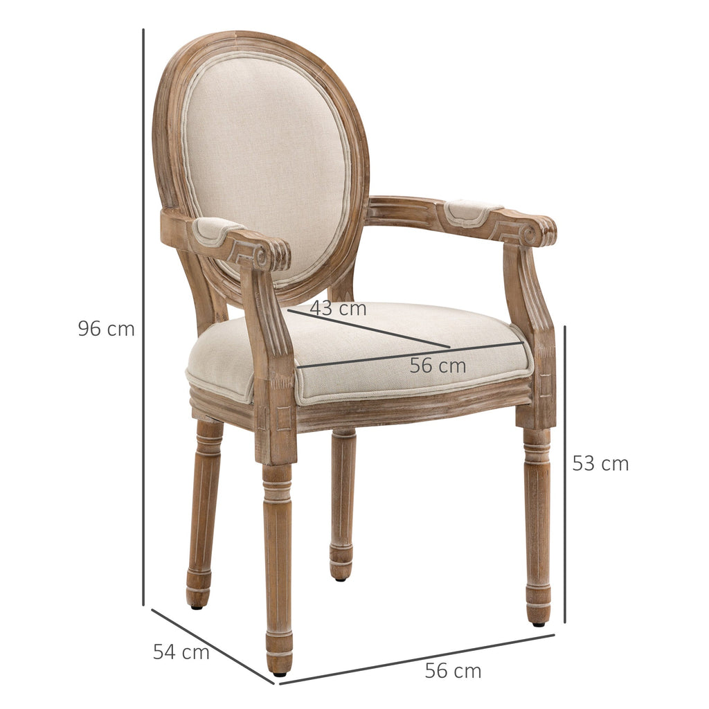 Sedia da Salotto Classica Imbottita 56x54x96 cm in Tessuto e Legno Caucciù Bianco Crema