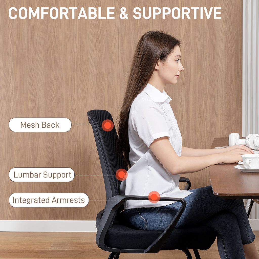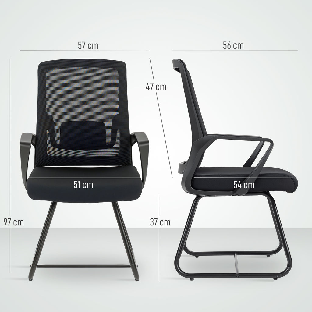 Sedia da Ufficio 57x56x97 cm Senza Ruote Ergonomica con Braccioli Struttura in Acciaio Nero
