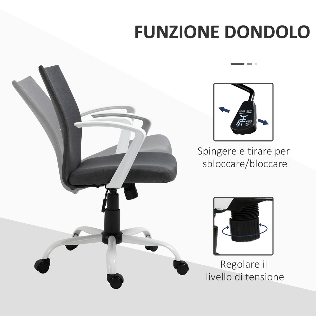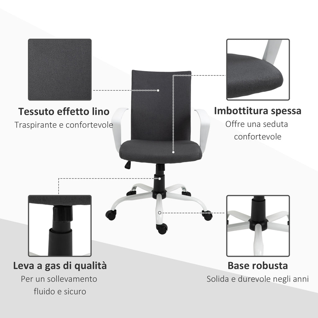 Sedia da Ufficio Ergonomica Girevole 61x61x89-99 cm in Poliestere Effetto Lino Grigio Scuro