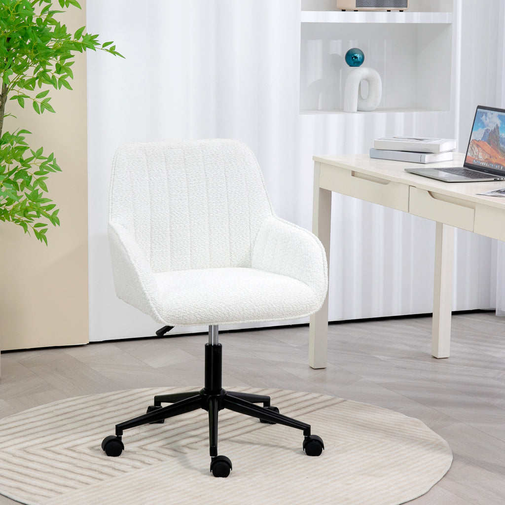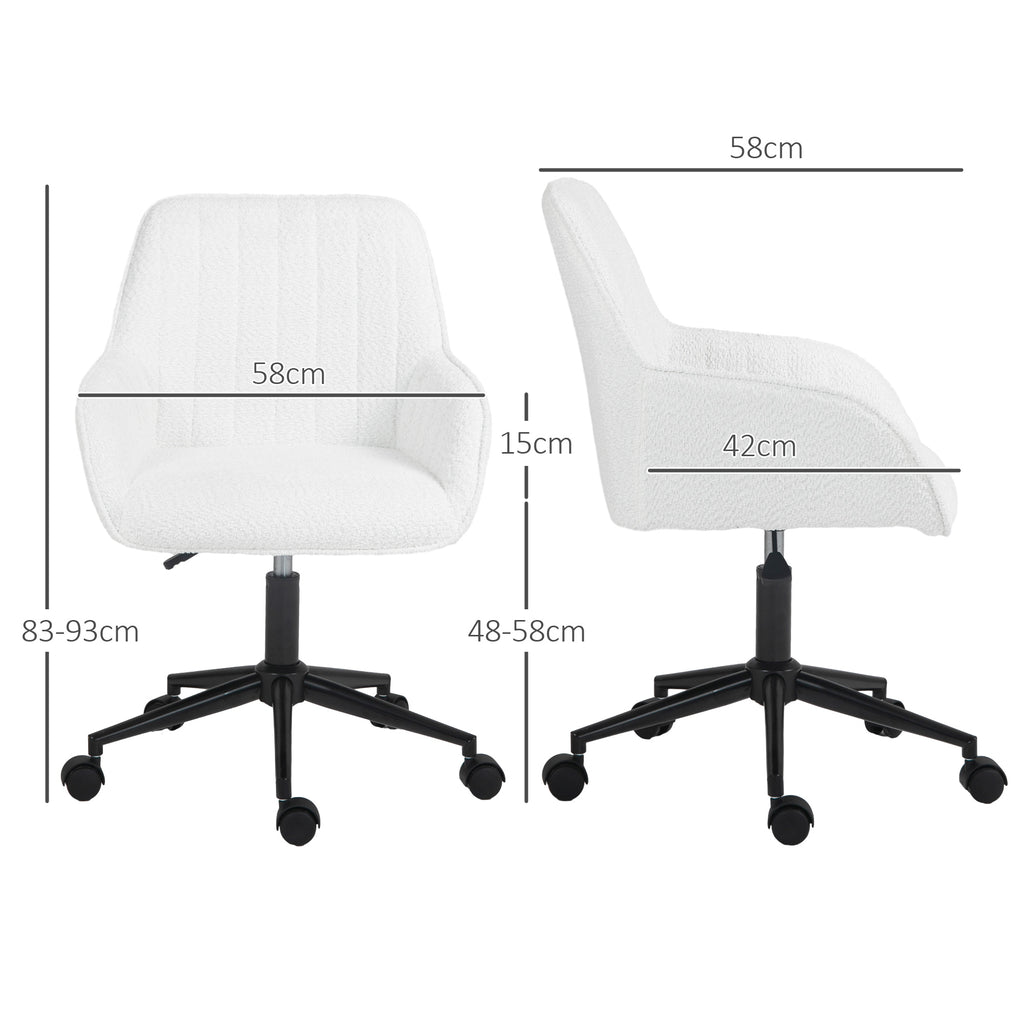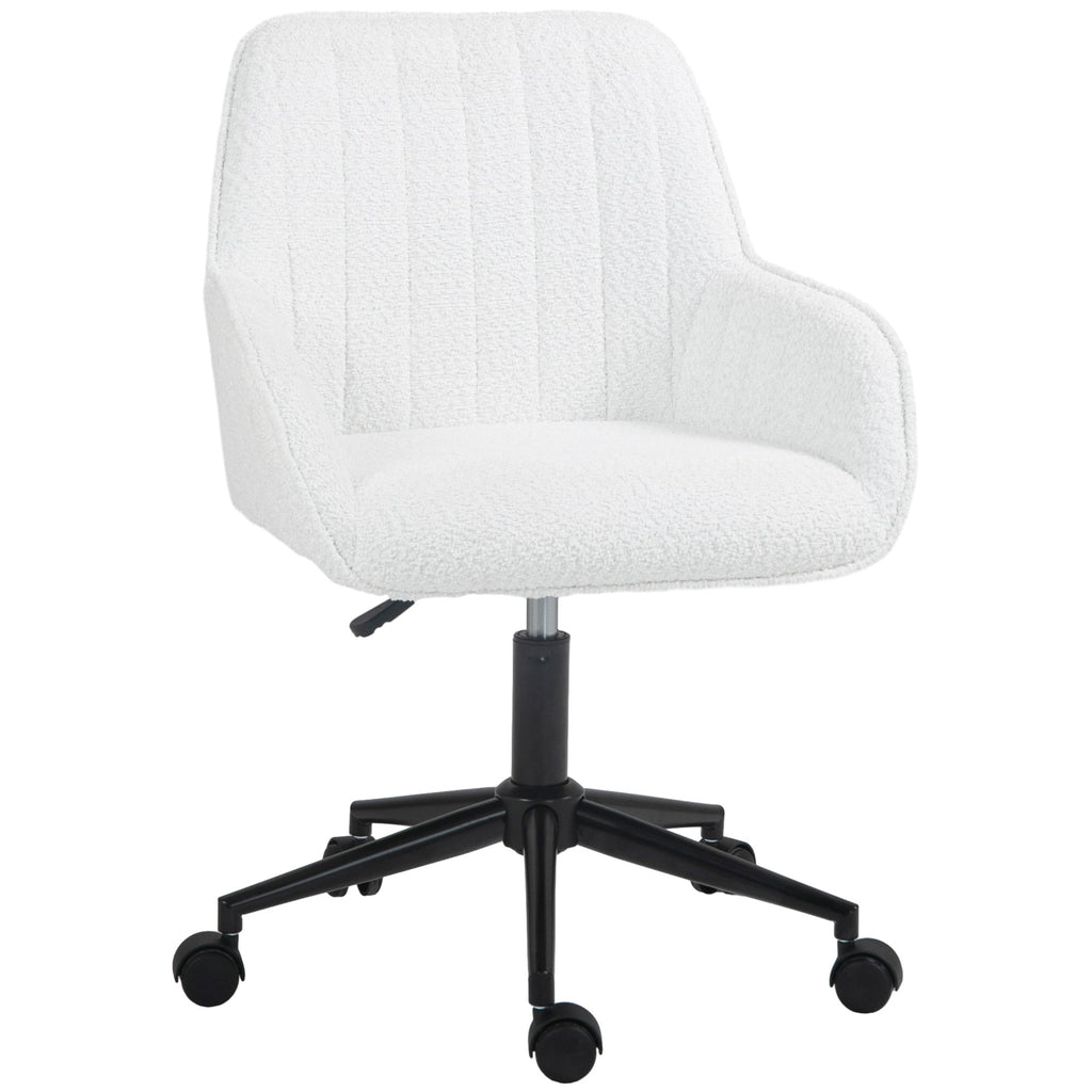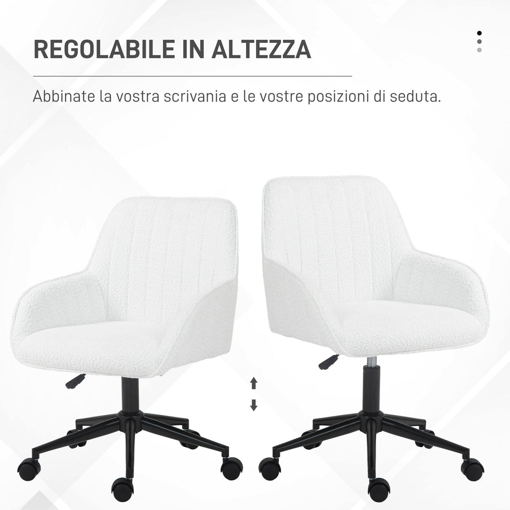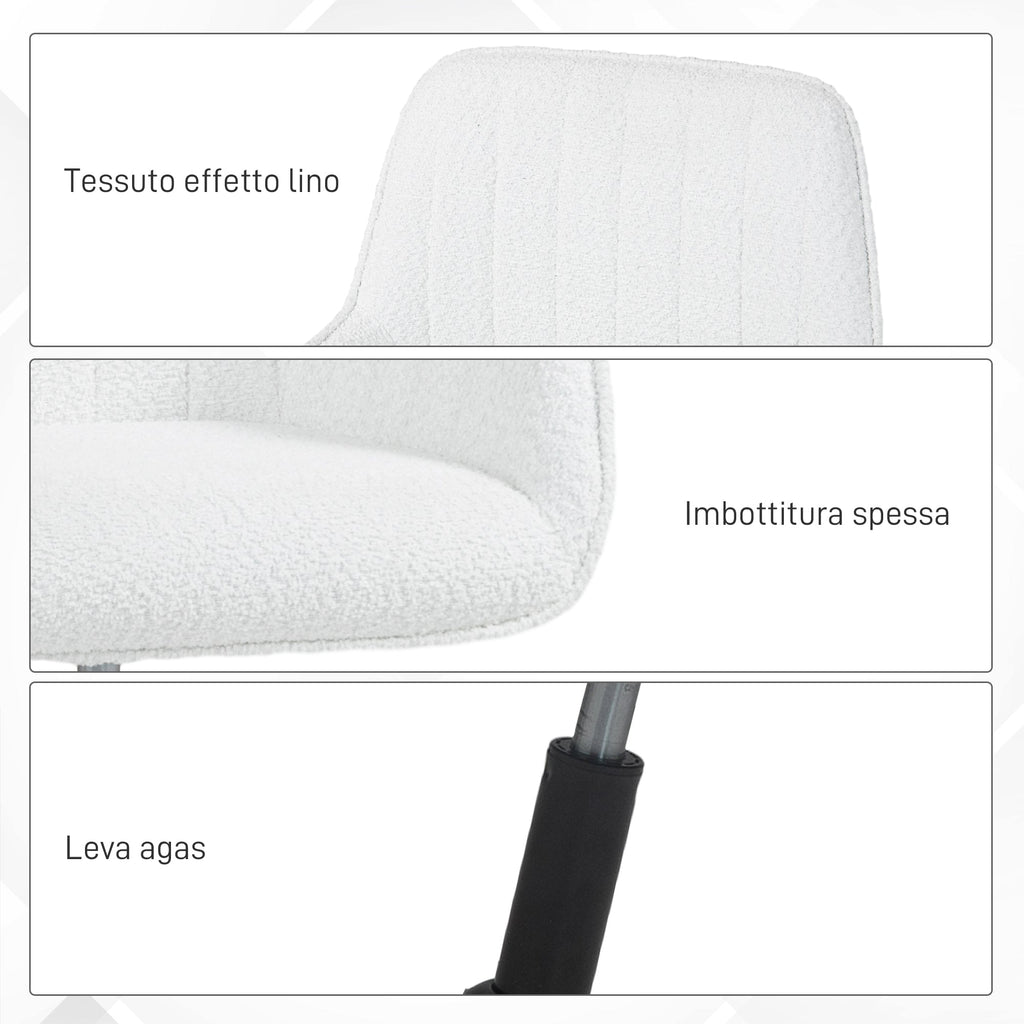 Sedia da Ufficio in Tessuto con Altezza Regolabile Seduta Girevole e Ruote Bianco