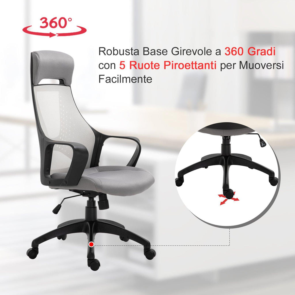 Chaise de bureau présidentielle en maille au design ergonomique avec support lombaire gris