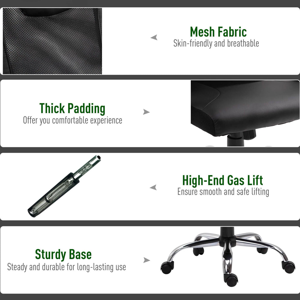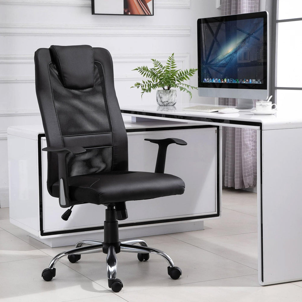 Chaise de Bureau Présidentielle Ergonomique en Maille et Similicuir Hauteur Réglable Noir