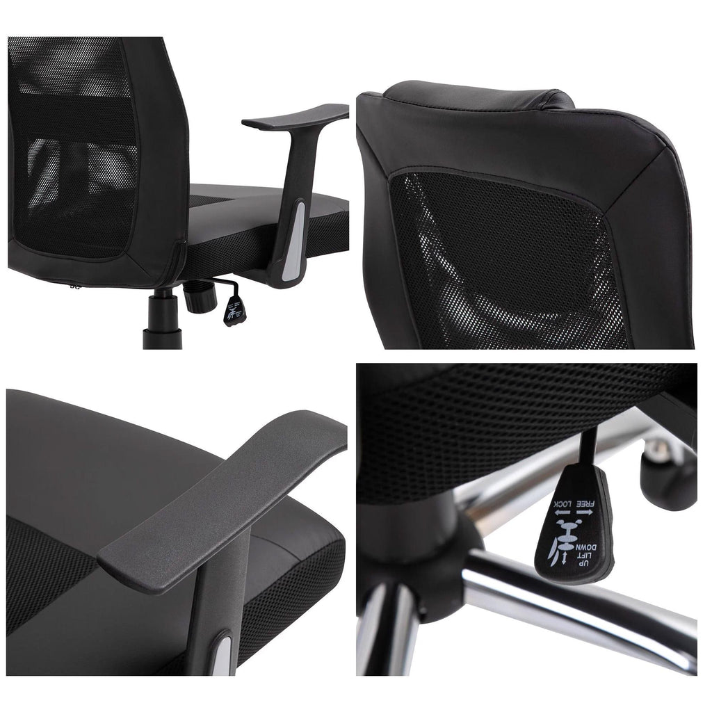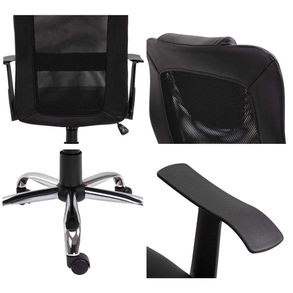 Chaise de Bureau Présidentielle Ergonomique en Maille et Simili Cuir Hauteur Réglable Noir