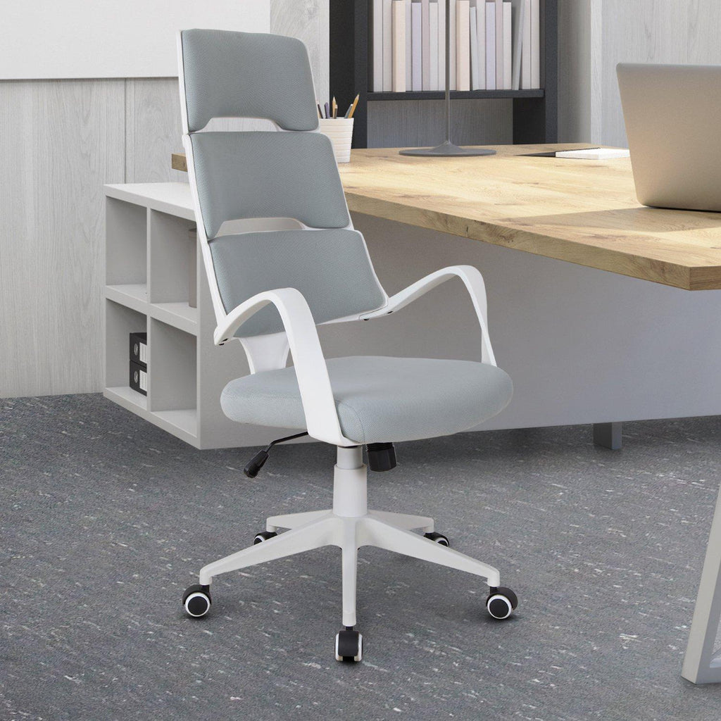 Chaise De Bureau Présidentielle Ergonomique En Tissu Blanc Et Gris