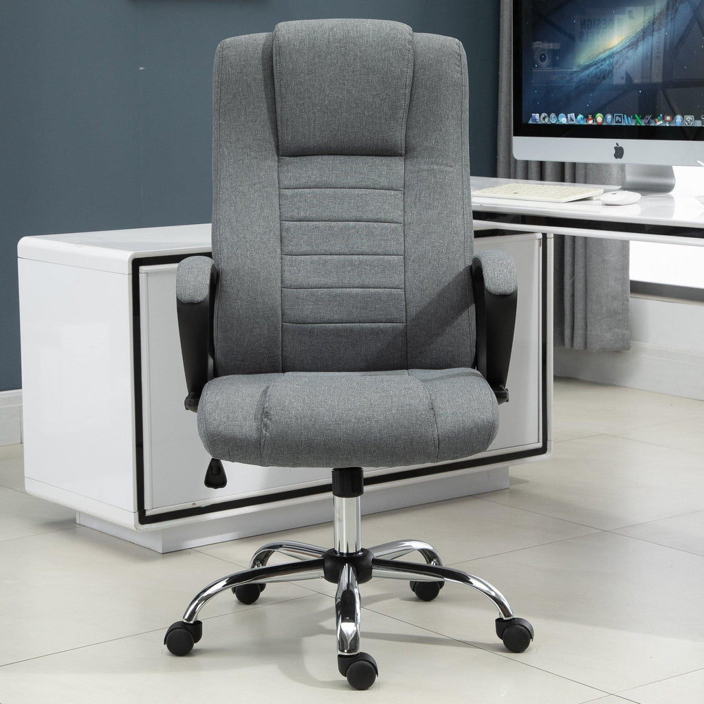 Assurez-vous d'avoir le meilleur siège au bureau avec ce fauteuil de direction de . Grâce à sa conception ergonomique, la chaise convient à une assise confortable et à un soutien tout au long de la journée. Enveloppé d'une doublure en lin, il est facile d'entretien. Il est fini avec une base pivotante à 360 degrés et cinq roulettes, ce qui signifie que vous n'avez pas besoin de vous lever tout le temps, ce qui vous permet d'économiser beaucoup de temps et d'énergie physique.