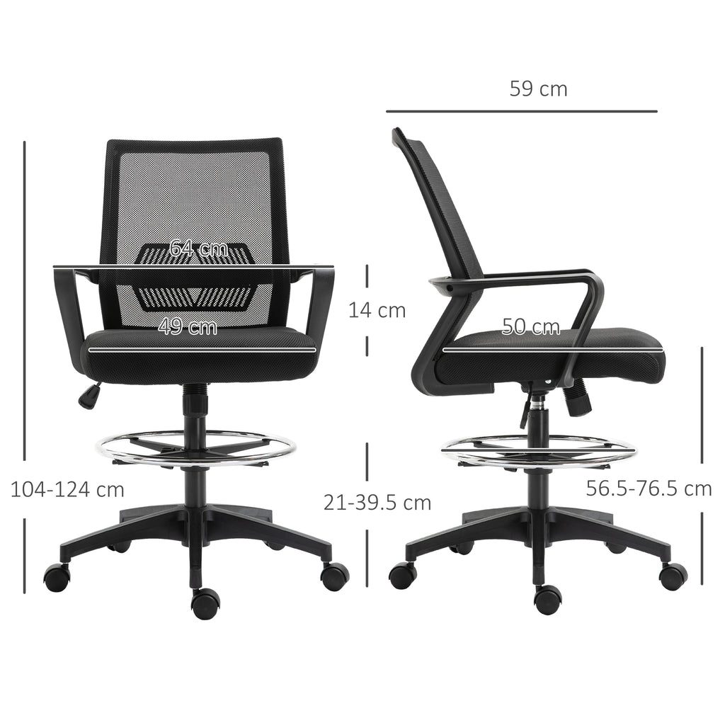 Sedia da Ufficio Regolabile con Braccioli e Anello Poggiapiedi 64x59x104-124 cm in Tessuto a Rete Nero