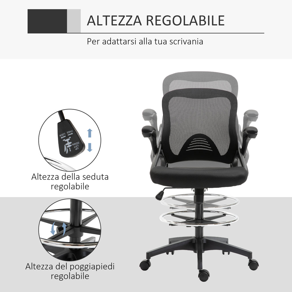 Sedia da Ufficio Traspirante con Braccioli Ribaltabili e Altezza Regolabile 64x60x106-126 cm Nero