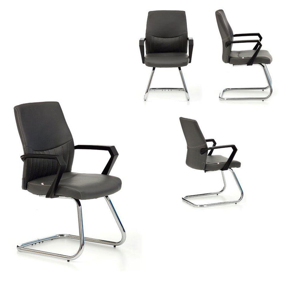 Chaise de bureau visiteur fixe en similicuir gris saké