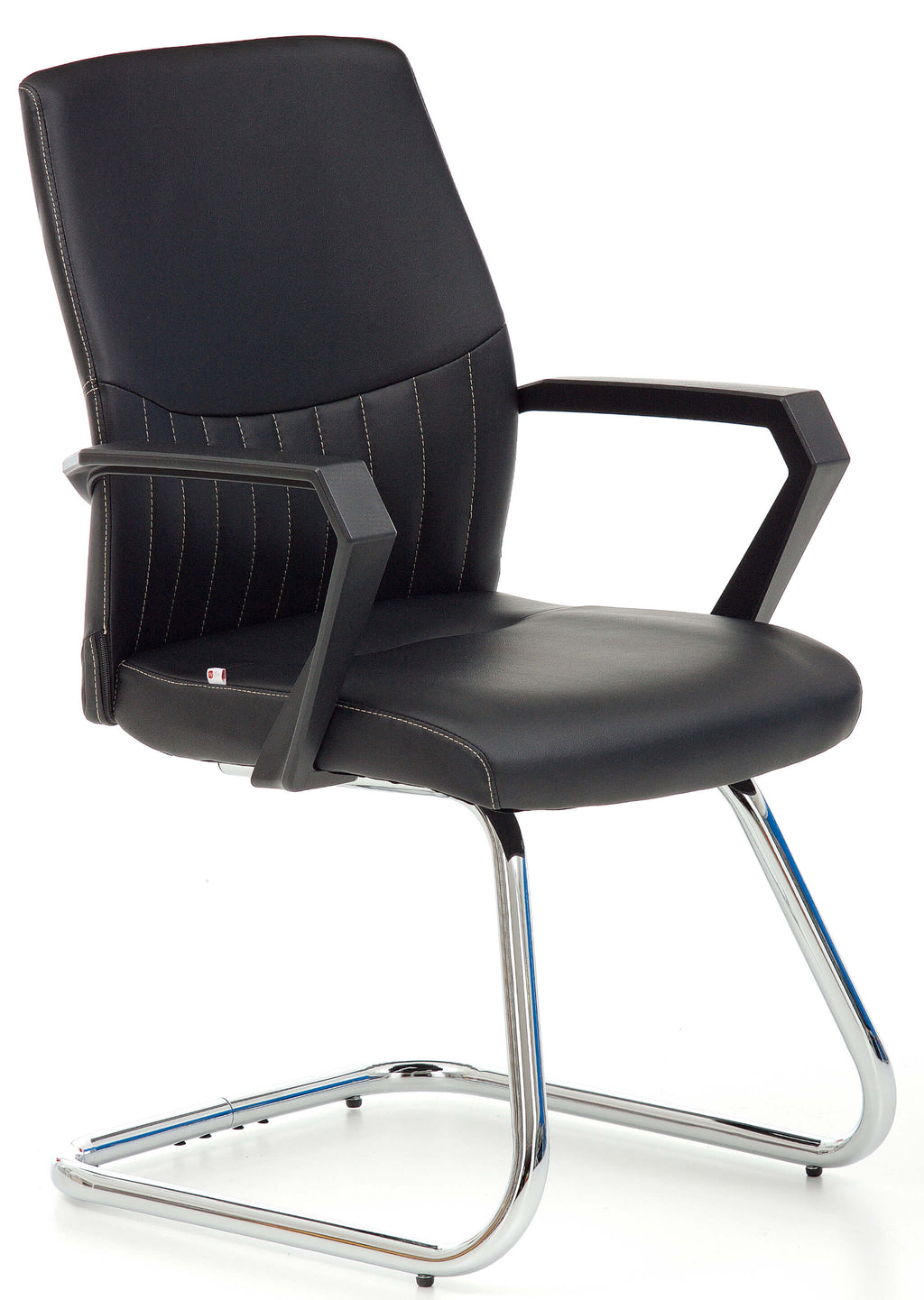 Chaise de bureau visiteur en simili cuir noir fixe Sake