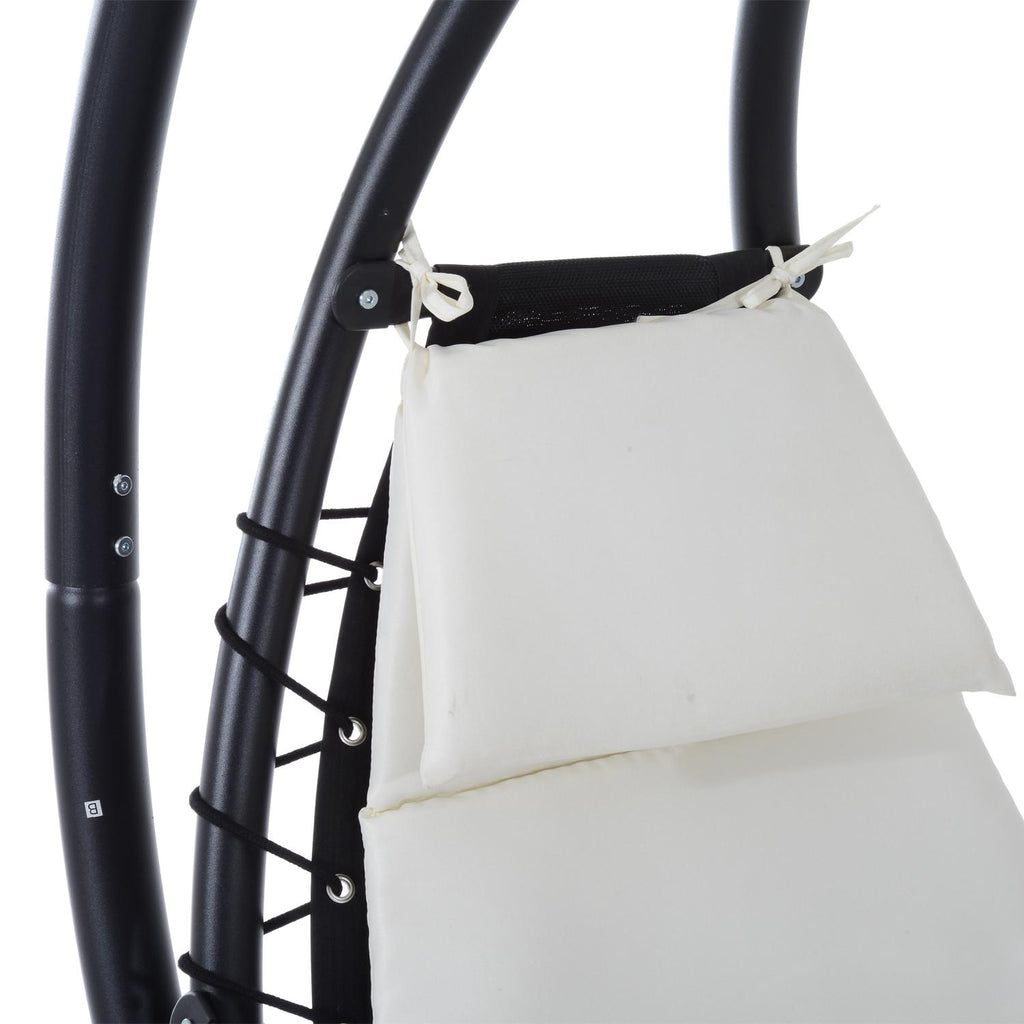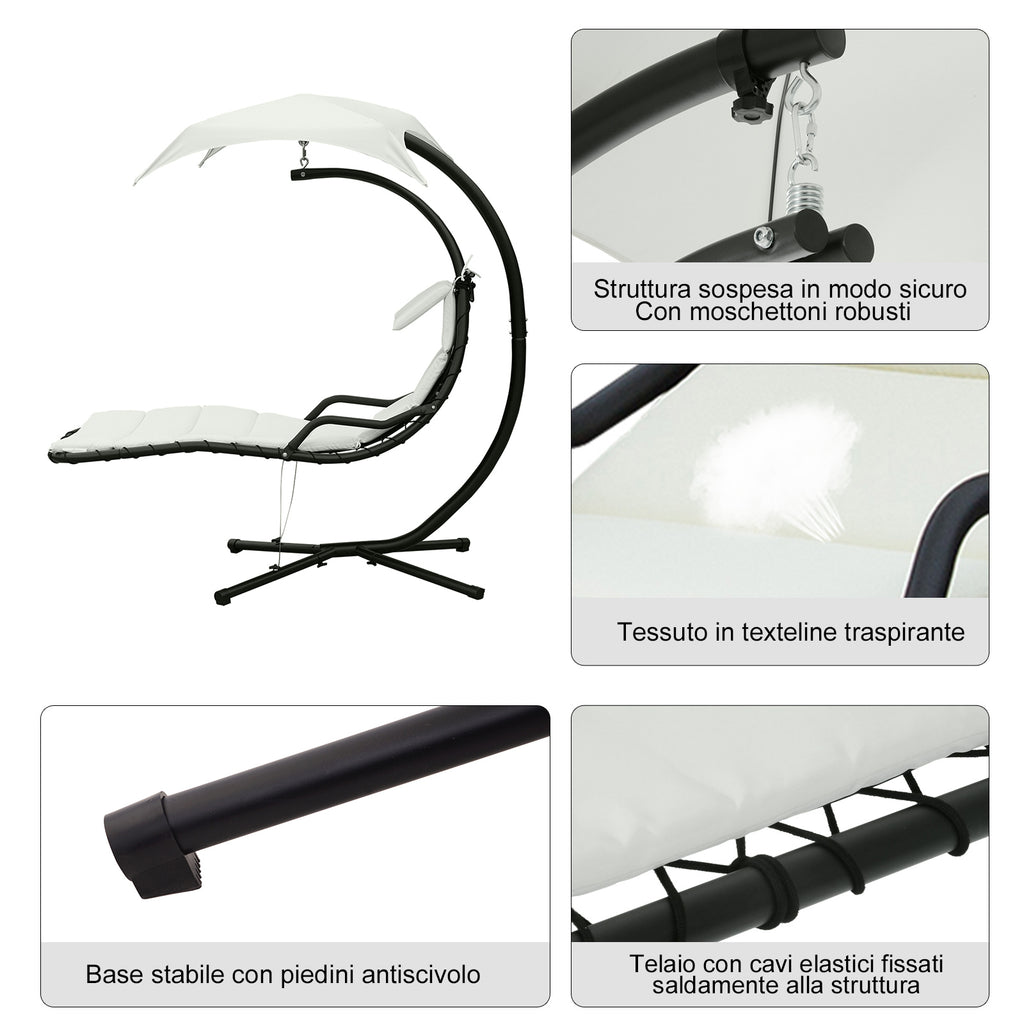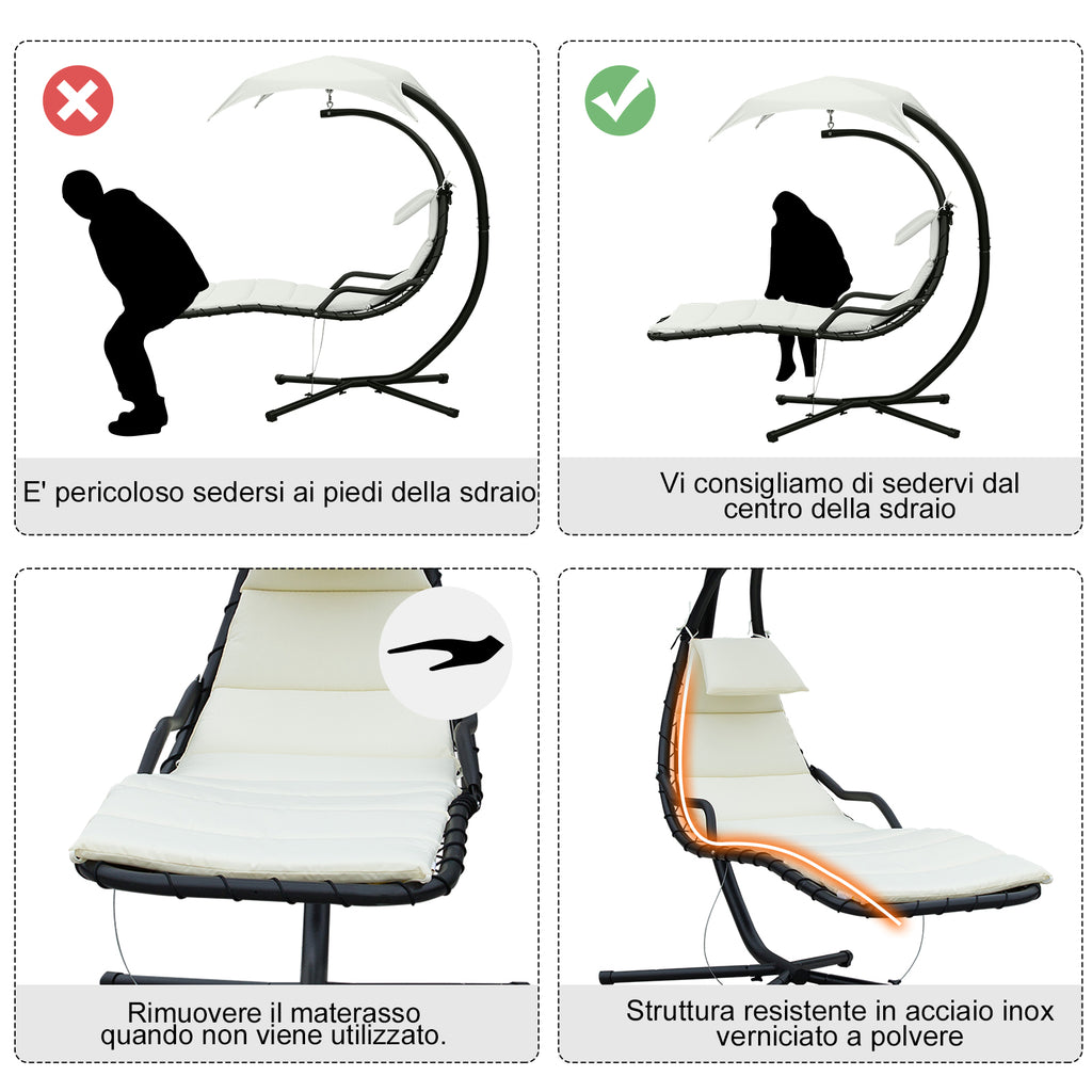 Chaise à bascule suspendue de luxe, chaise longue relaxante avec auvent crème