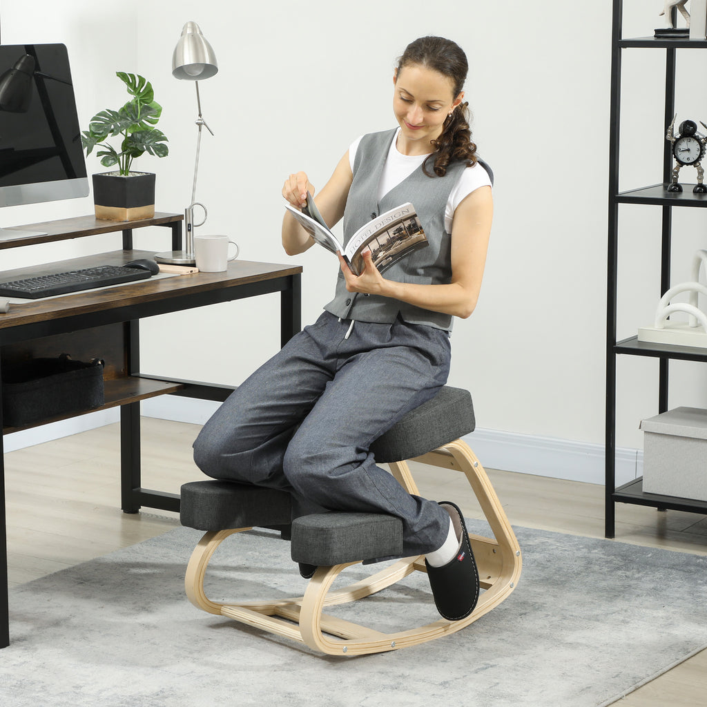 Sedia Ergonomica con Inginocchiatoio 51x69x58 cm in Legno di Betulla e Cuscini Grigio