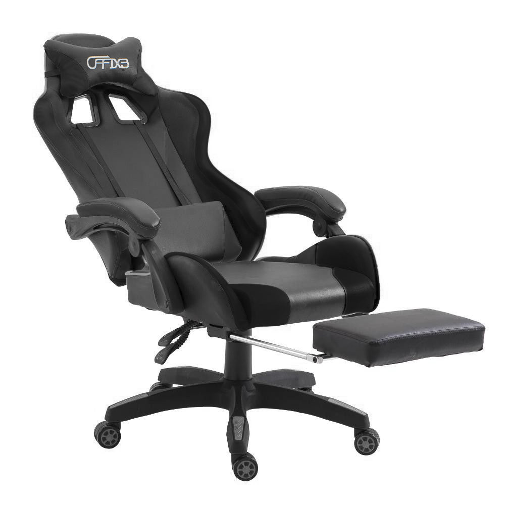 Chaise de jeu avec repose-pieds en similicuir noir