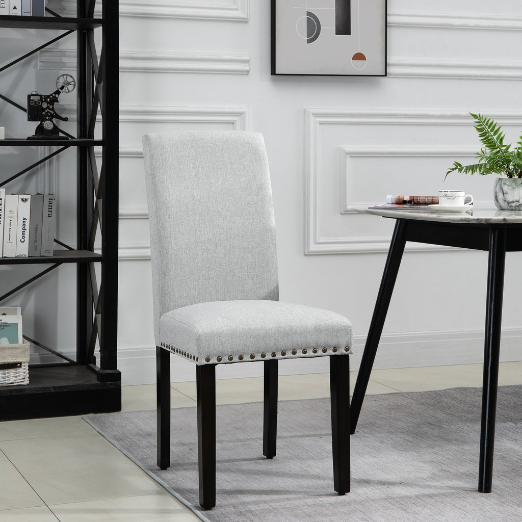 Cette chaise de salle à manger est idéale pour la cuisine, le salon, la salle à manger, etc. La conception classique de la tête de clou peut s'adapter à la plupart des occasions. La combinaison de bois de pin, de mousse et de lin offre durabilité et confort sans affecter la mode et le style. Avec des pieds en plastique, il peut empêcher le sol de se gratter et de faire du bruit lors du déplacement. Choisir cette chaise, c'est choisir une expérience plus confortable et profiter de la vie à un niveau élevé.