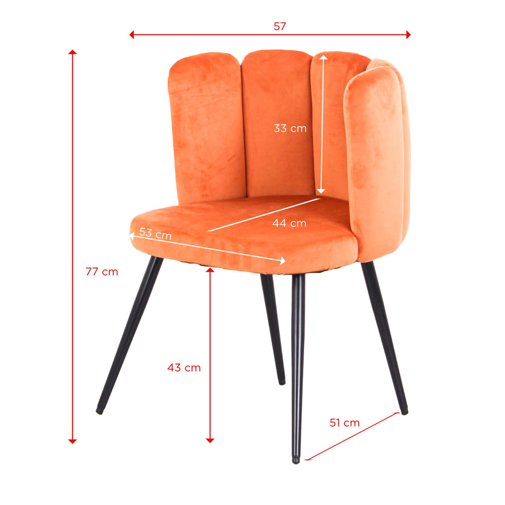 Chaise rembourrée 57x51x77 cm en velours caramel