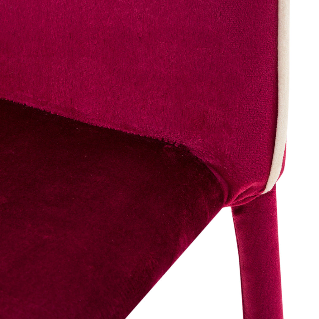 Chaise empilable avec structure en métal tubulaire et rembourrage en polyuréthane, entièrement recouverte de velours bordeaux.