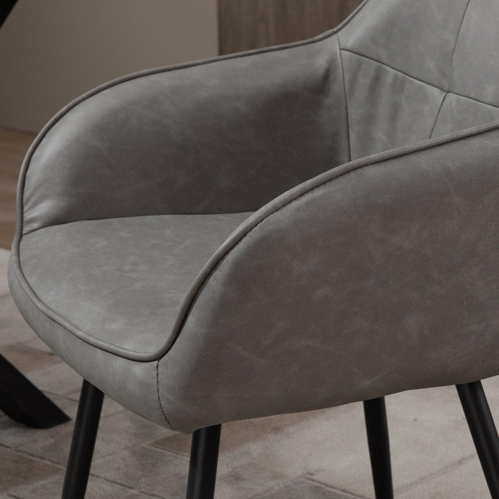Vous cherchez une chaise de salle à manger non seulement chic, mais aussi très confortable ? Ce siège est conçu pour vous offrir un maximum de confort : il dispose d'un dossier enveloppant, d'un épais rembourrage en mousse et de deux larges accoudoirs de 4 cm de large. L'association des pieds en métal noir et du revêtement en similicuir gris lui donne un look moderne, parfait pour créer une ambiance raffinée.