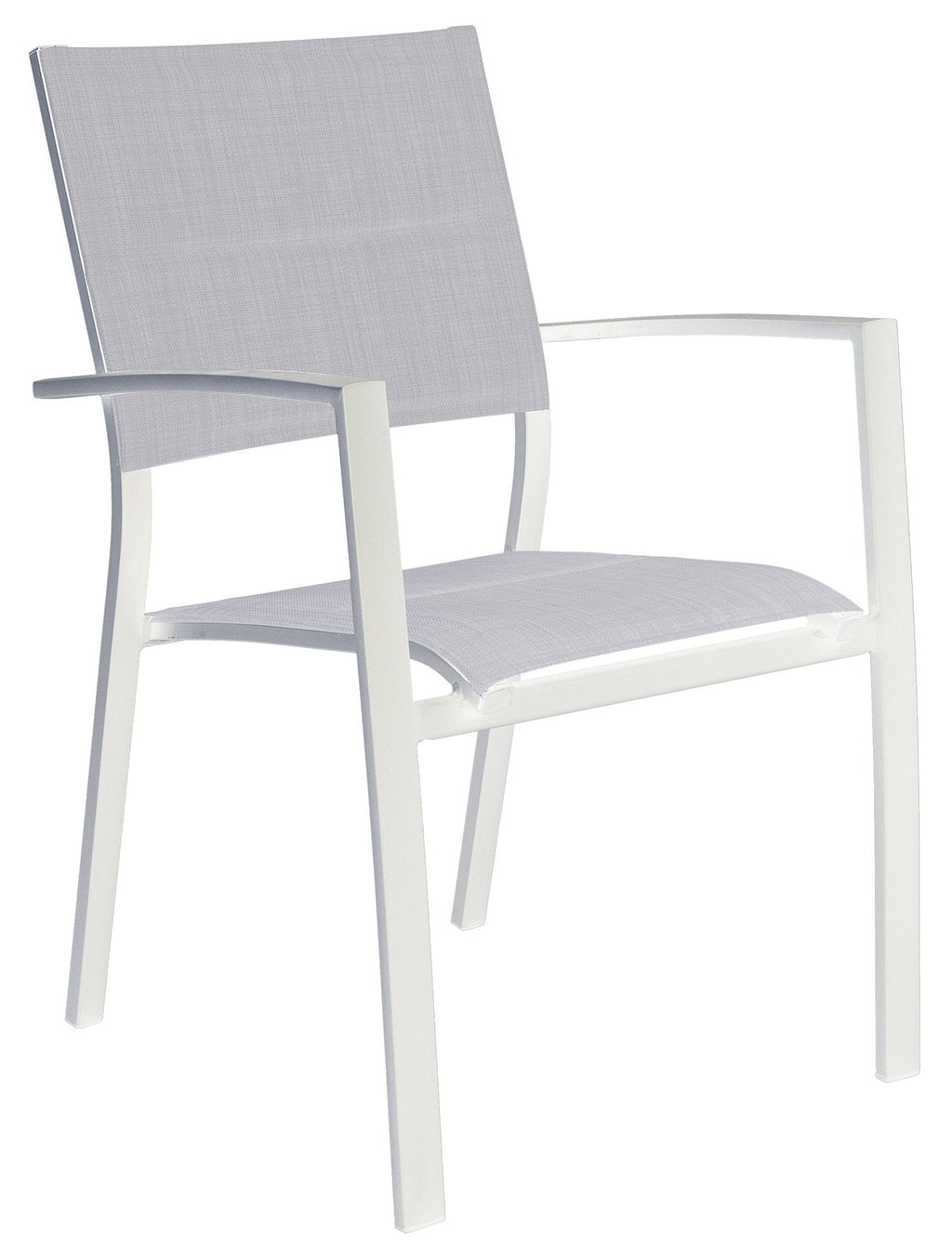 Chaise de jardin empilable 59x56x88 cm en aluminium et textilène rembourré blanc et gris clair
