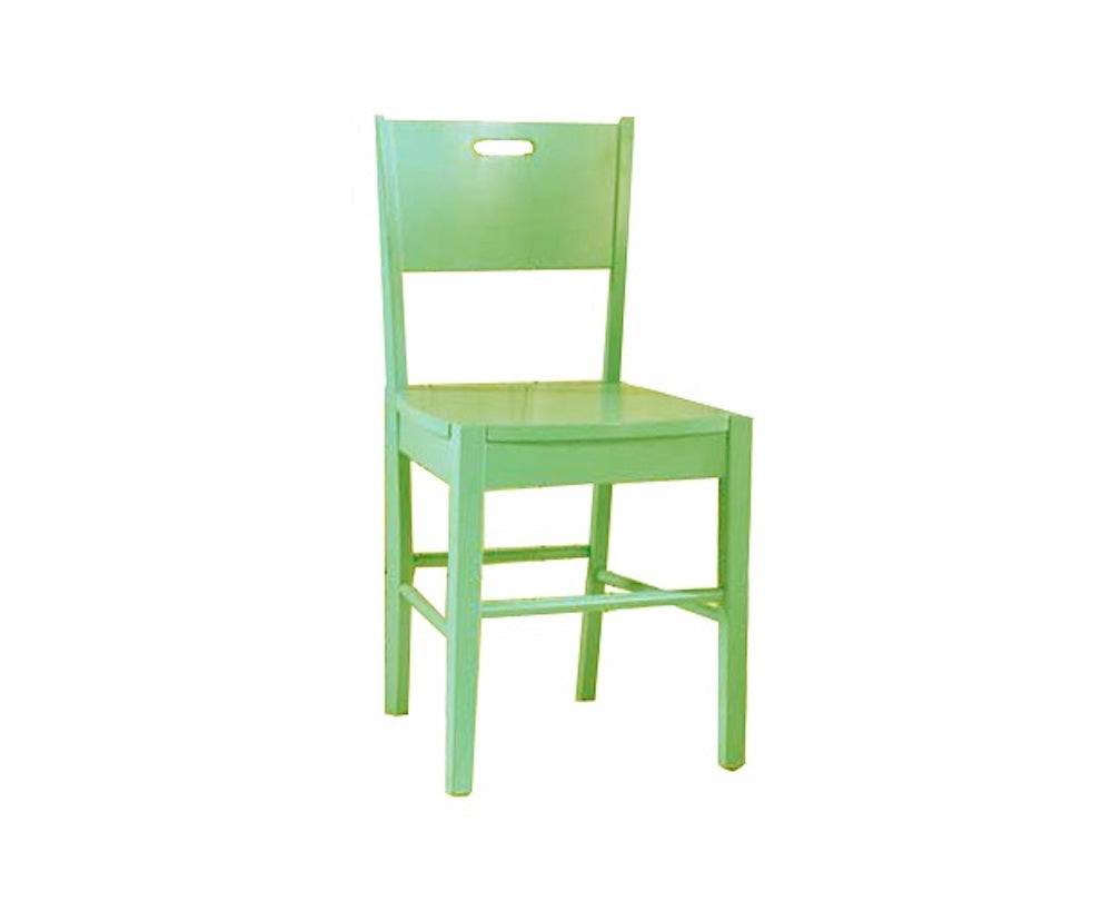 Chaise en bois laqué vert.Confortable et légère, cette chaise peut facilement meubler un environnement moderne ou plus classique.
