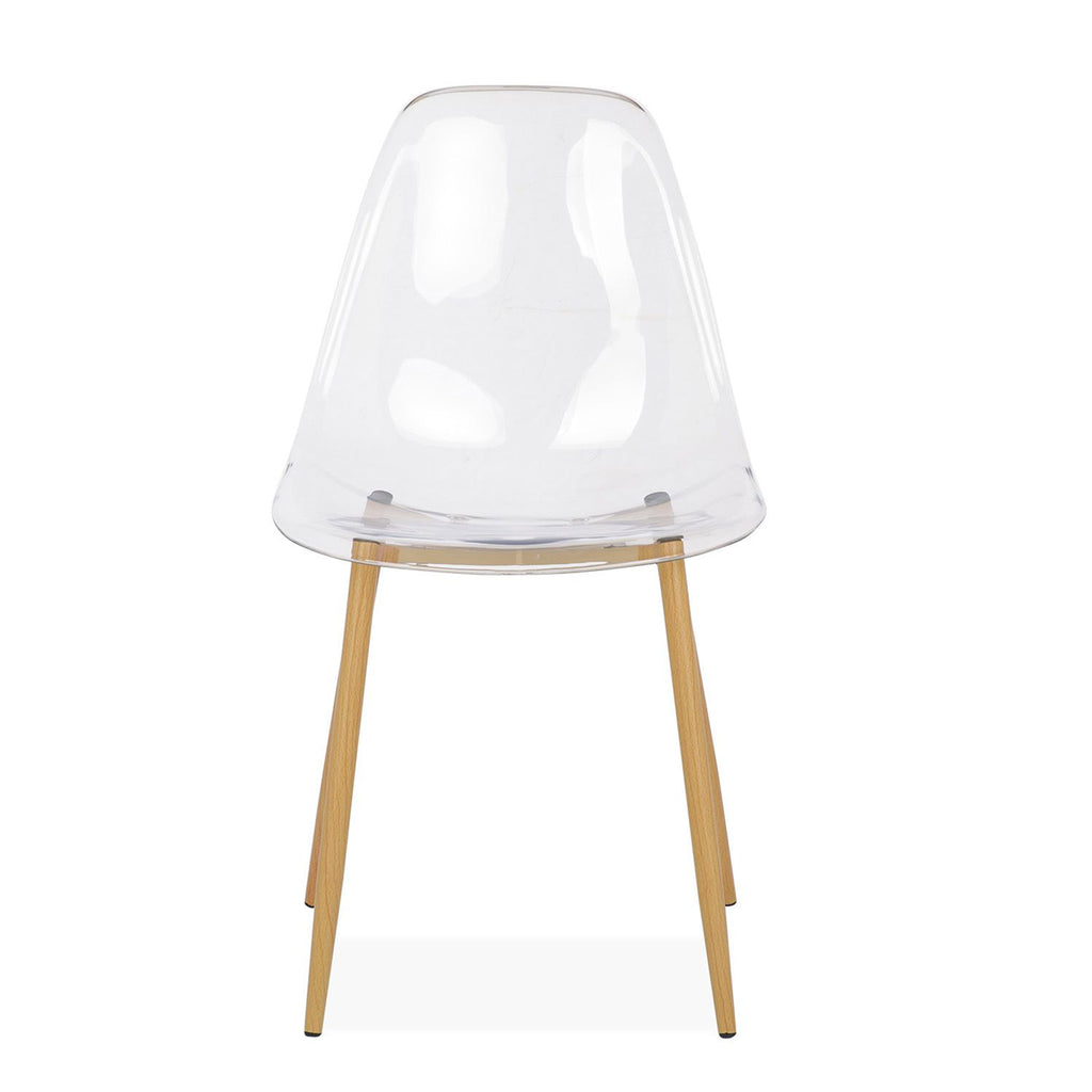 Chaise avec assise en méthacrylate transparent et pieds en métal finition chêne.