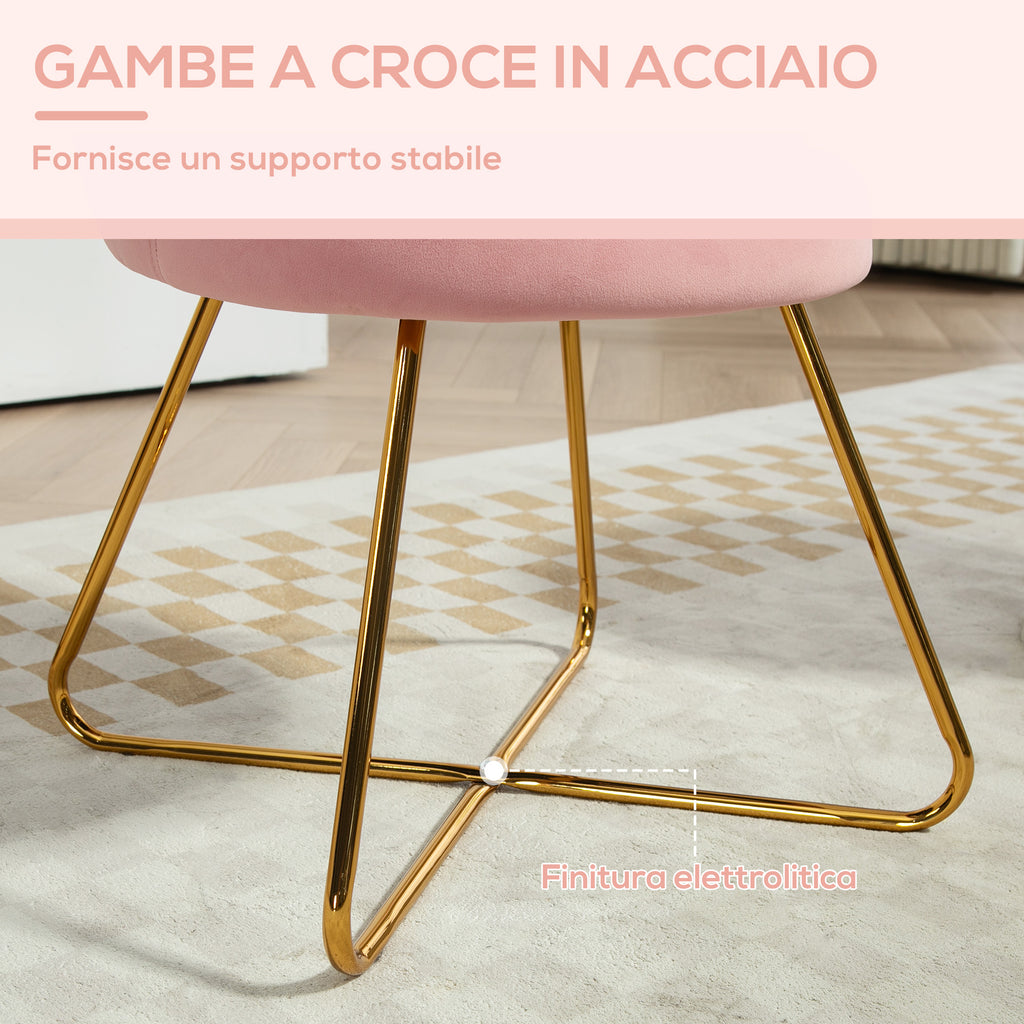 Sedia Moderna Ergonomica con Schienale a Petalo 69x64x80 cm in Velluto Rosa e Gambe Incrociate Oro