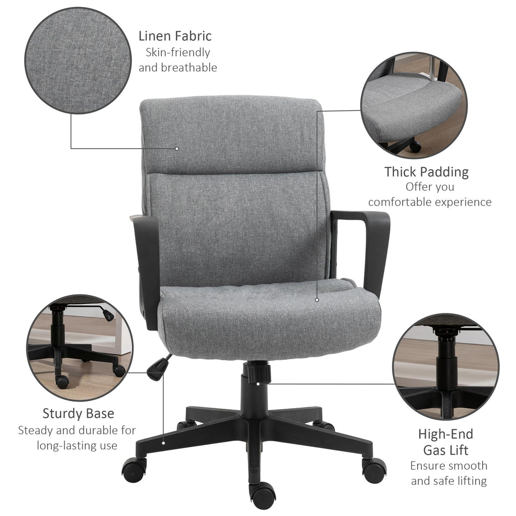 Rendez votre travail au bureau plus confortable avec la chaise de bureau. Grâce à son design ergonomique, son rembourrage moelleux et son revêtement en tissu effet lin, la chaise de chambre et de bureau vous offre confort et respirabilité. Les roues pivotantes et le siège vous permettent de vous déplacer facilement sans vous lever. Et pour un moment de détente pendant les pauses, vous pourrez vous bercer doucement sur la chaise ergonomique.