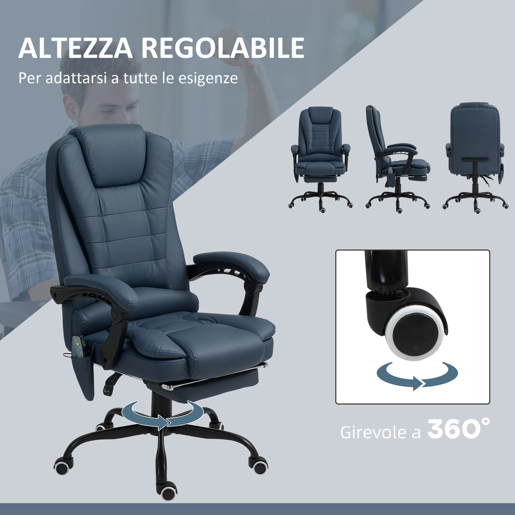 Sedia Operativa da Ufficio con 7 Punti Massaggianti e Poggiapiedi Blu