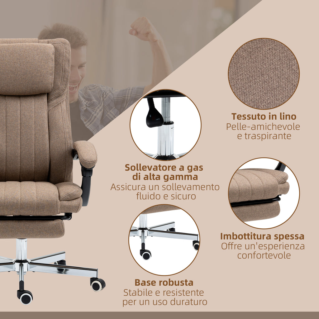Sedia Operativa da Ufficio Massaggiante con Poggiapiedi e Telecomando 65x61x105-113 cm Marrone