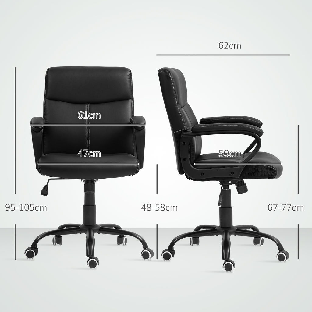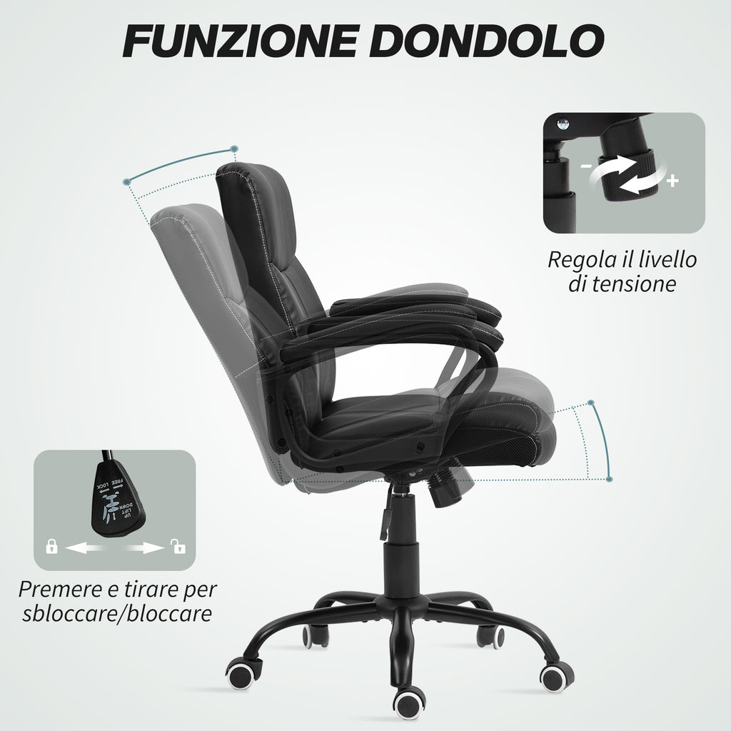 Non lasciarti sfuggire il comfort della nostra sedia da ufficio: un mix ideale tra comodità e stile per lavorare e studiare nella migliore condizione possibile. Potrai goderti il relax con l'imbottitura in schiuma ad alta densità, contenuta in raffinata pelle PU. La sedia può inclinarsi e oscillare liberamente grazie alla seduta regolabile che ti permetterà di trovare la posizione ideale. Perfetta per ogni ambiente lavorativo, questo supporto coniuga praticità e design contemporaneo.