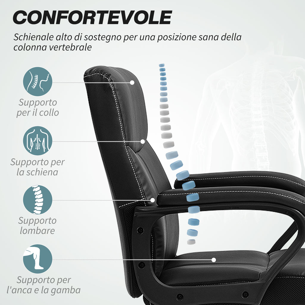 Sedia Operativa da Ufficio Reclinabile in Pelle PU Nero
