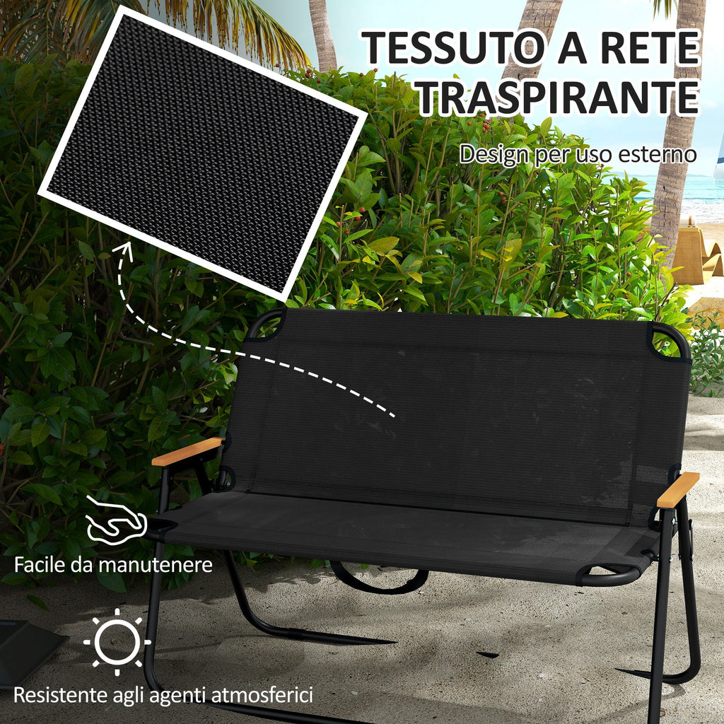 Sedia Panchina da Campeggio 2 Posti Pieghevole 108x65x73cm in Acciaio e tessuto Oxford Nero