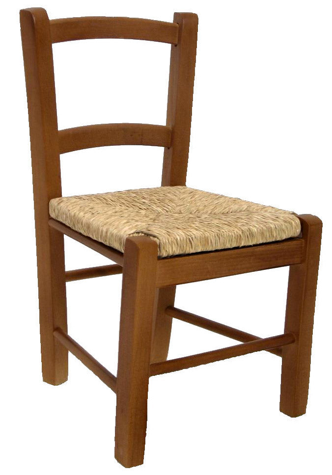 Chaise pour enfants en bois avec assise en paille. Couleur noyer.