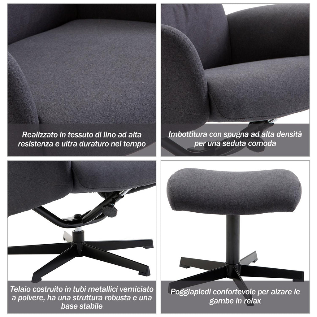 - Fauteuil avec repose-pieds aux courbes simples et modernes, idéal pour la maison ou le bureau.