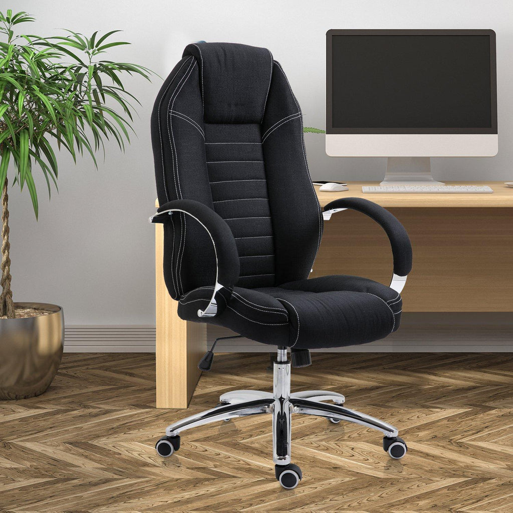 Chaise de bureau présidentielle pivotante en lin respirant noir