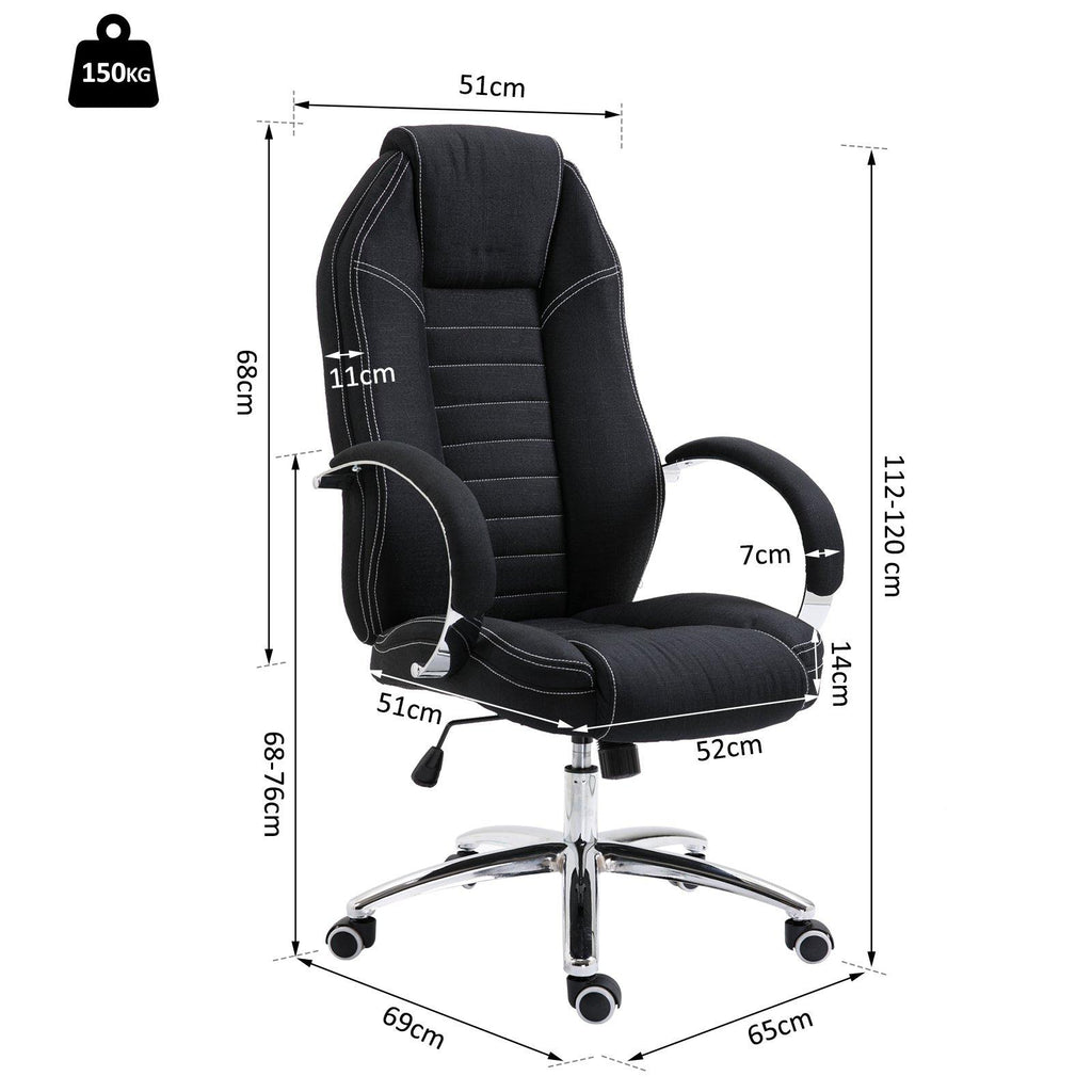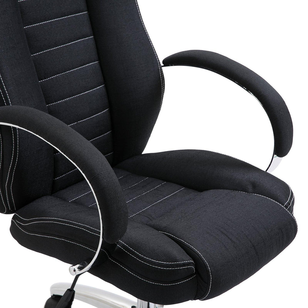 Chaise de bureau présidentielle pivotante en lin noir respirant
