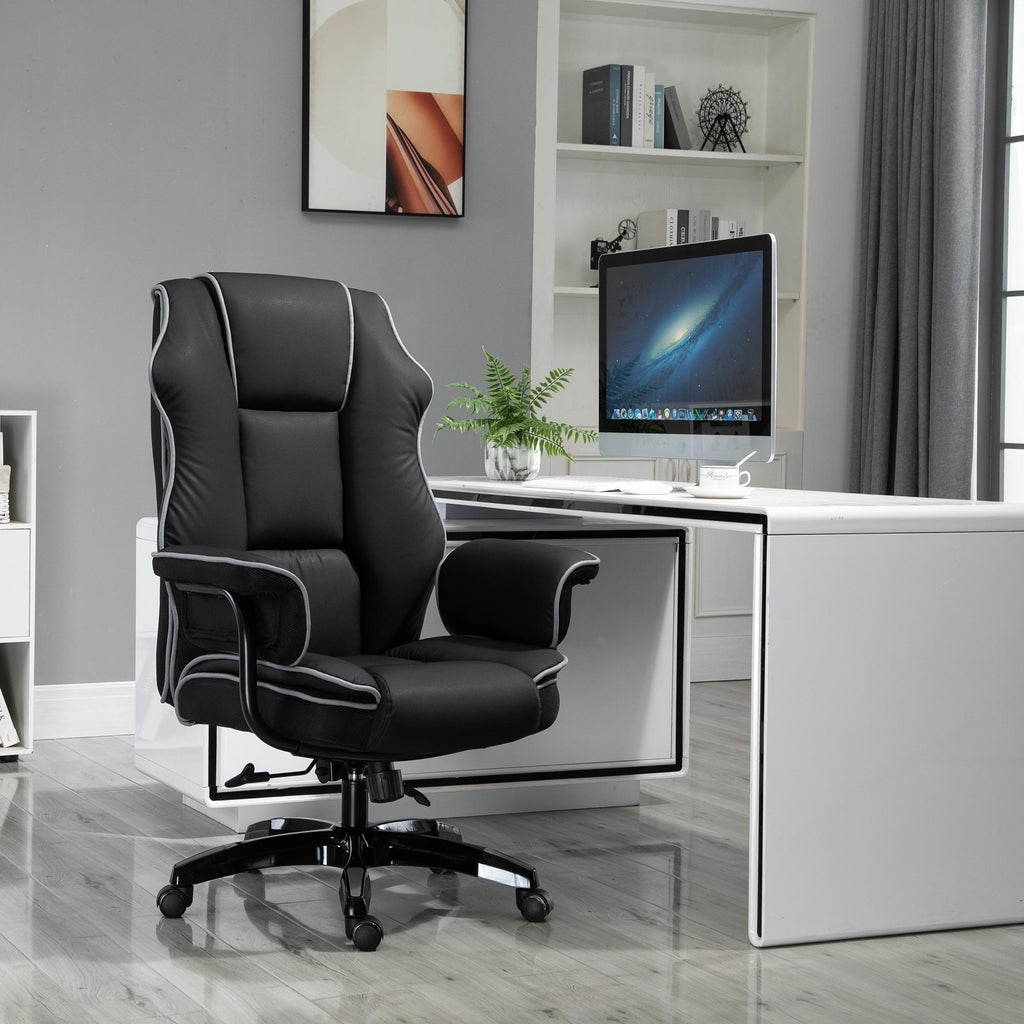 Voici la chaise parfaite pour le bureau ou l'étude ! Avec son rembourrage supplémentaire et son dos en simili cuir, il est confortable, ergonomique et doux pour la peau. L'assise est réglable en hauteur et le dossier s'incline jusqu'à 150°. Vous verrez, son confort supplémentaire vous aidera à retrouver votre concentration et à travailler au bon rythme !