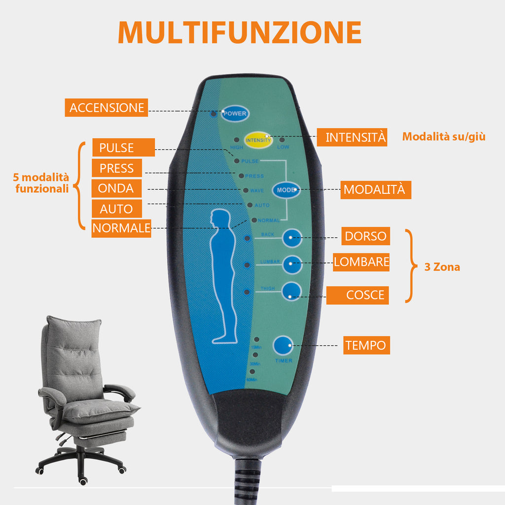 Fauteuil de bureau de massage présidentiel 70x62x120-130 cm avec repose-pieds gris