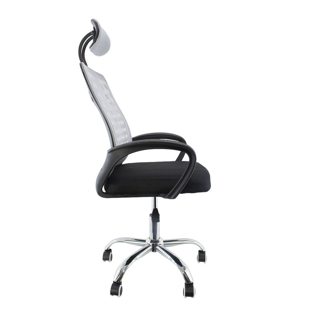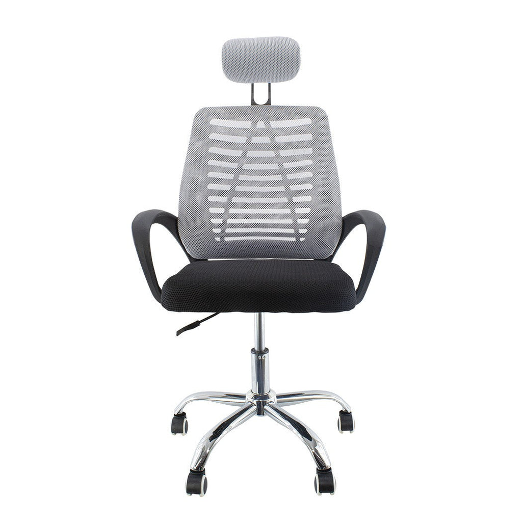 Chaise de bureau de direction grise avec appui-tête et accoudoirs