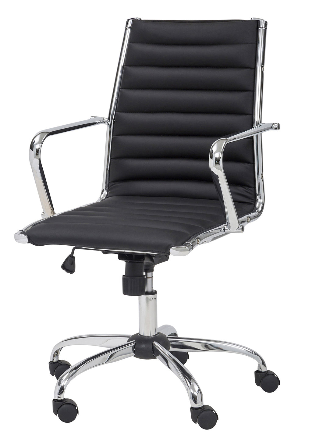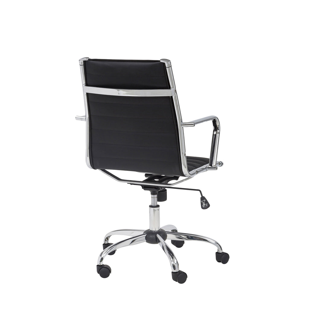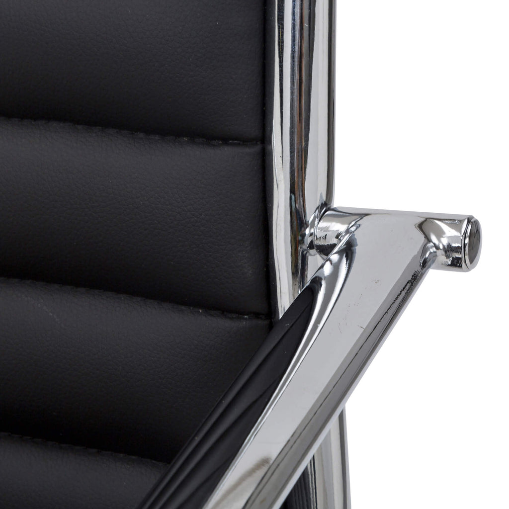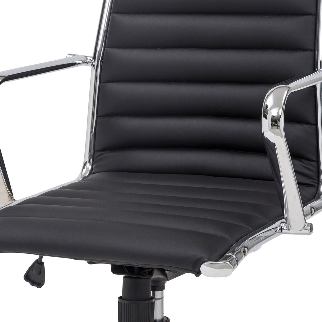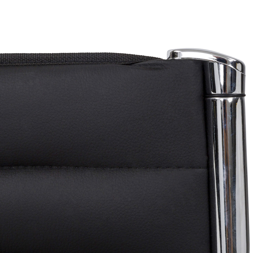 - L'assise et le dossier sont rembourrés en polyuréthane et recouverts de simili cuir matelassé noir