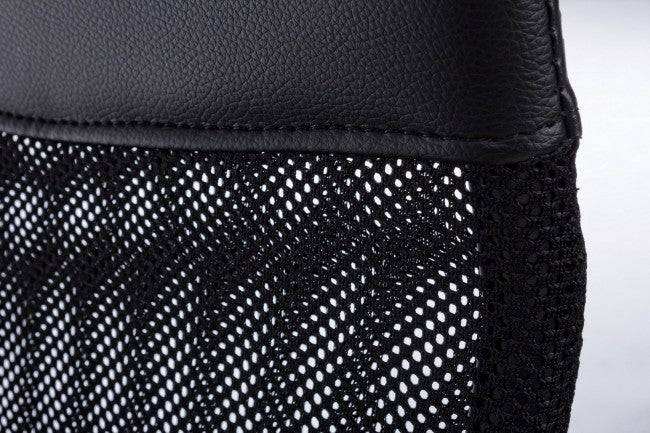 - Assise rembourrée et recouverte de tissu 100% polyester et tissu maillé avec insert en simili cuir