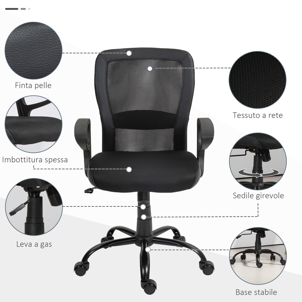 Sedia Poltrona Operativa Altezza Regolabile In Tessuto a Rete Nero
