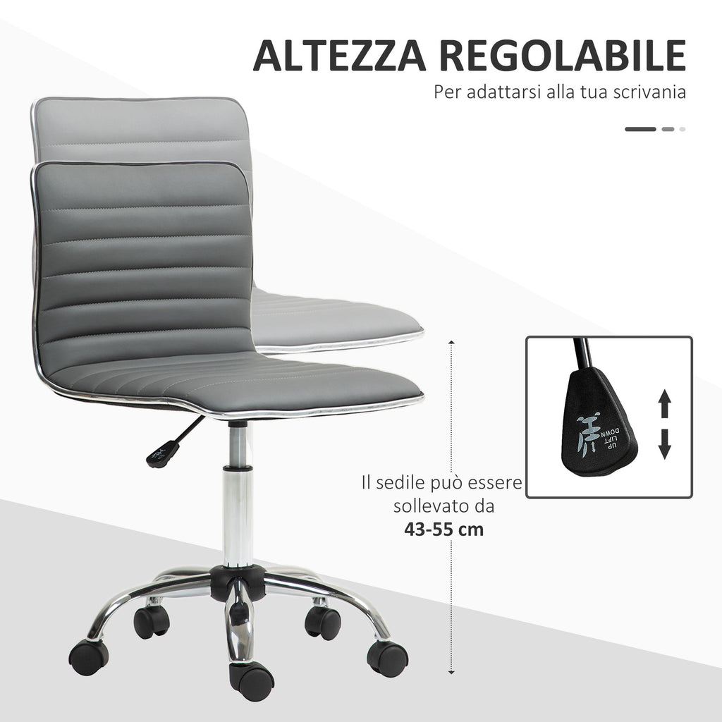 Sedia Poltrona Operativa da Ufficio Ergonomica con Altezza Regolabile in Pelle PU Grigio Scuro