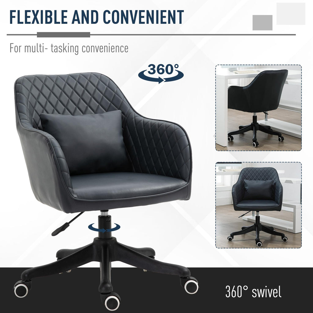 Chaise de bureau de travail en simili cuir avec coussin lombaire gris foncé