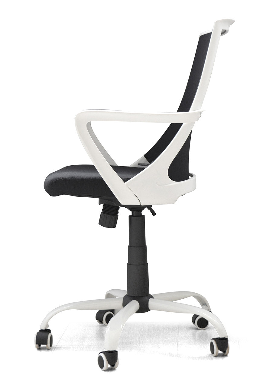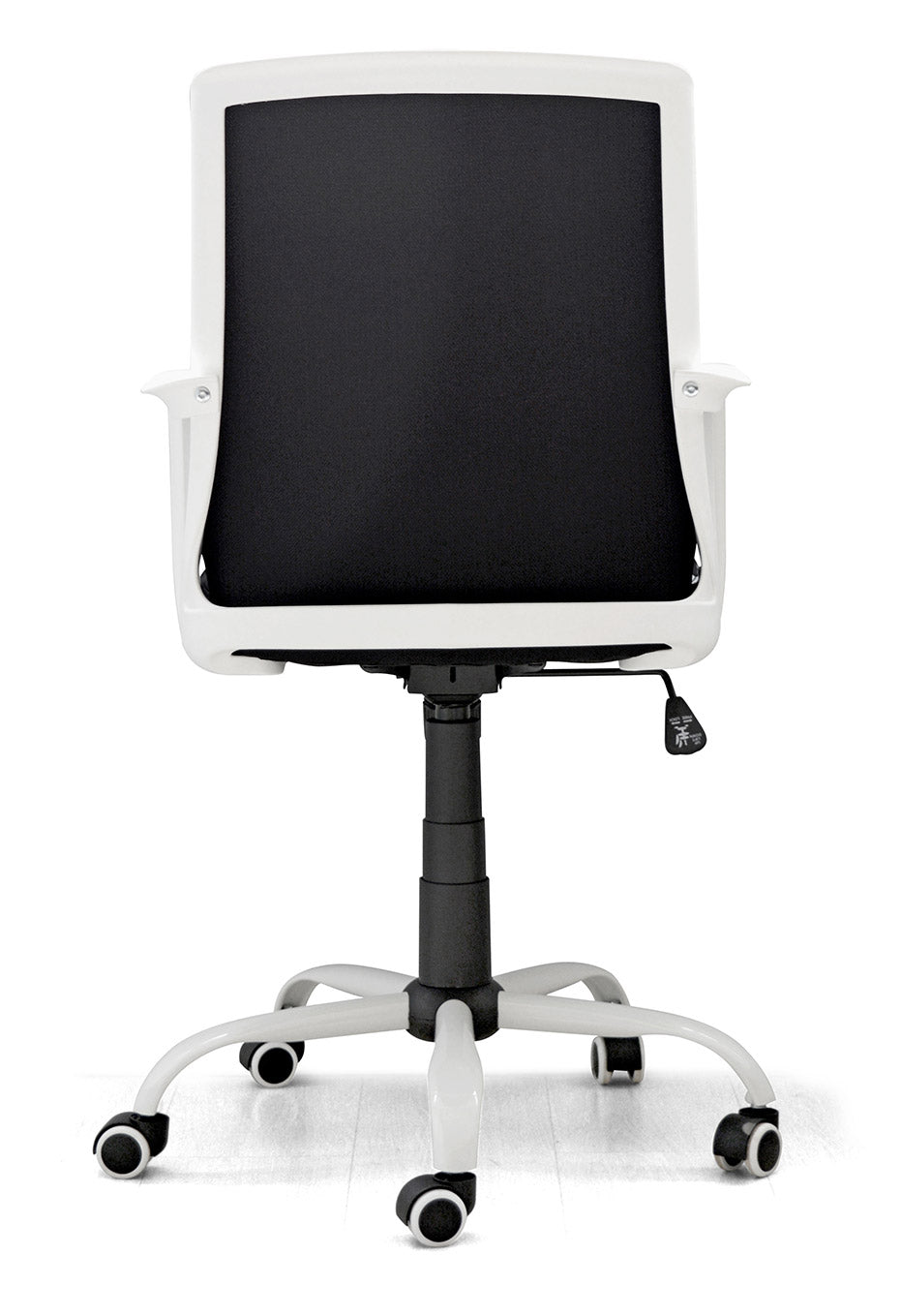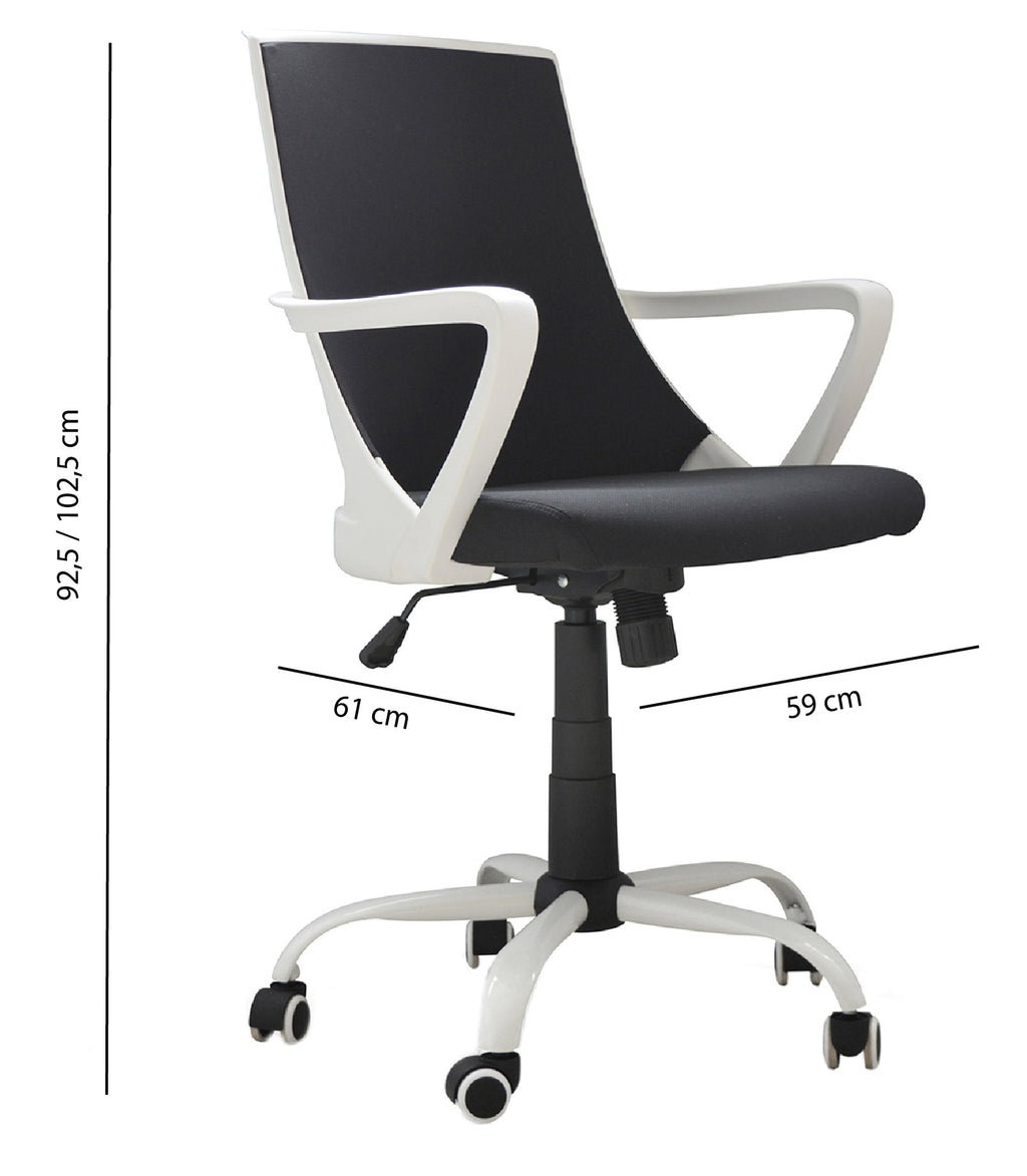 - Roues en ABS et métal laqué blanc comme les accoudoirs