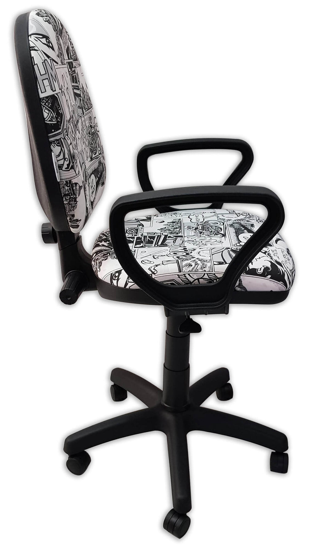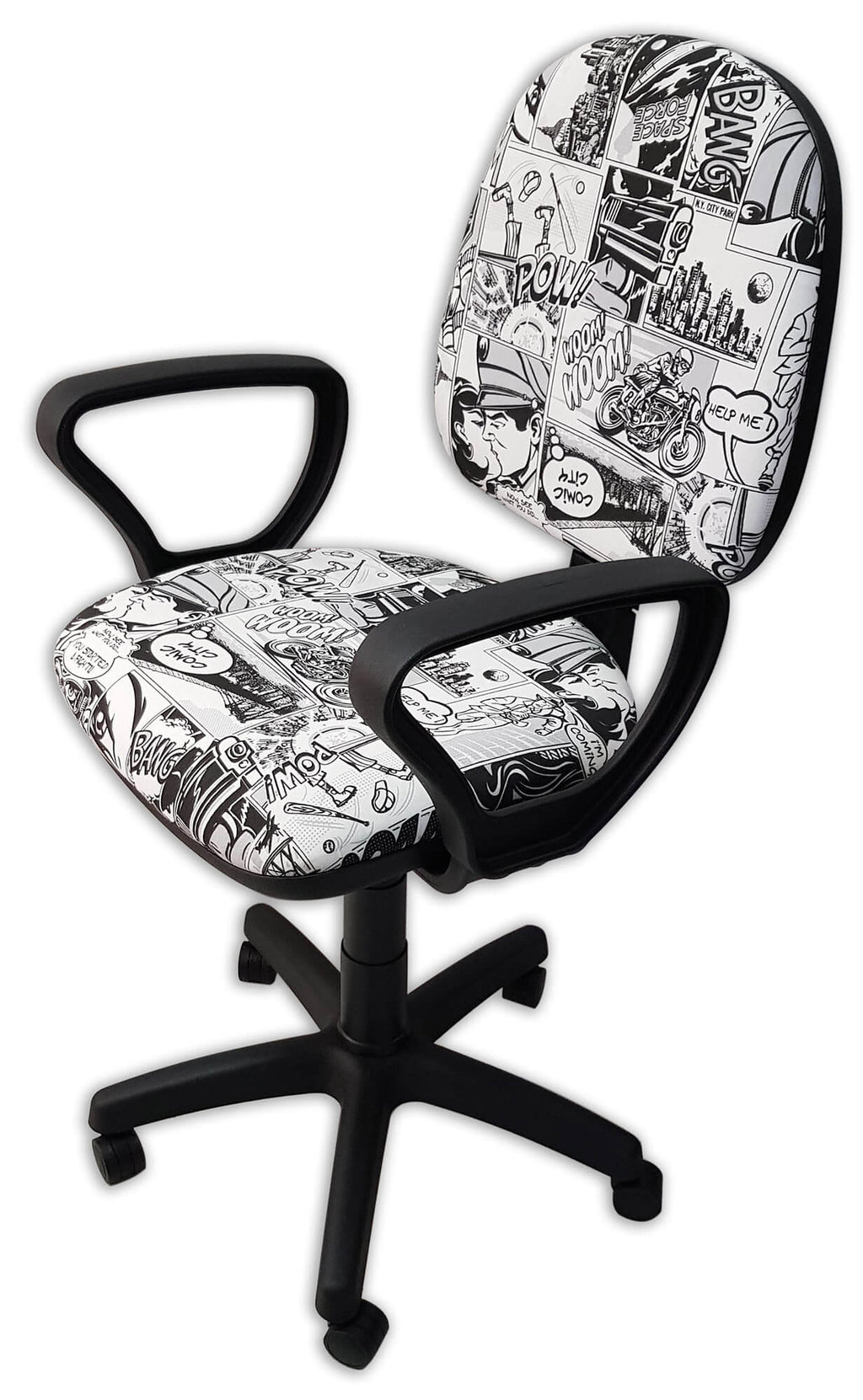 Chaise de bureau avec accoudoirs en tissu Renier Comics noir et blanc