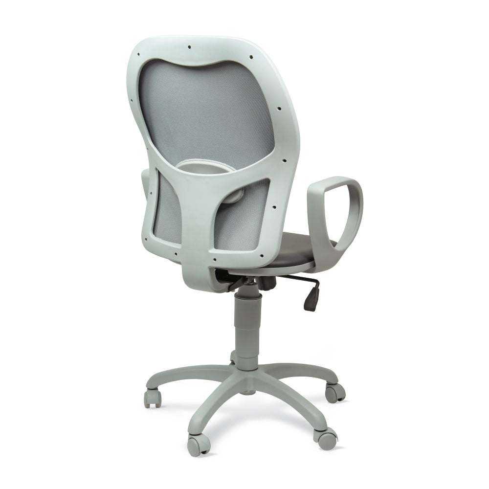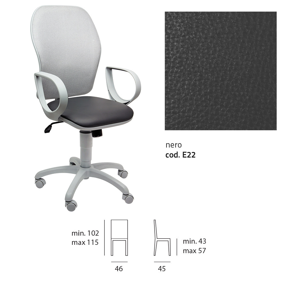 Siège de travail en tissu noir et simili cuir pour le bureau Givon Bruxelles.