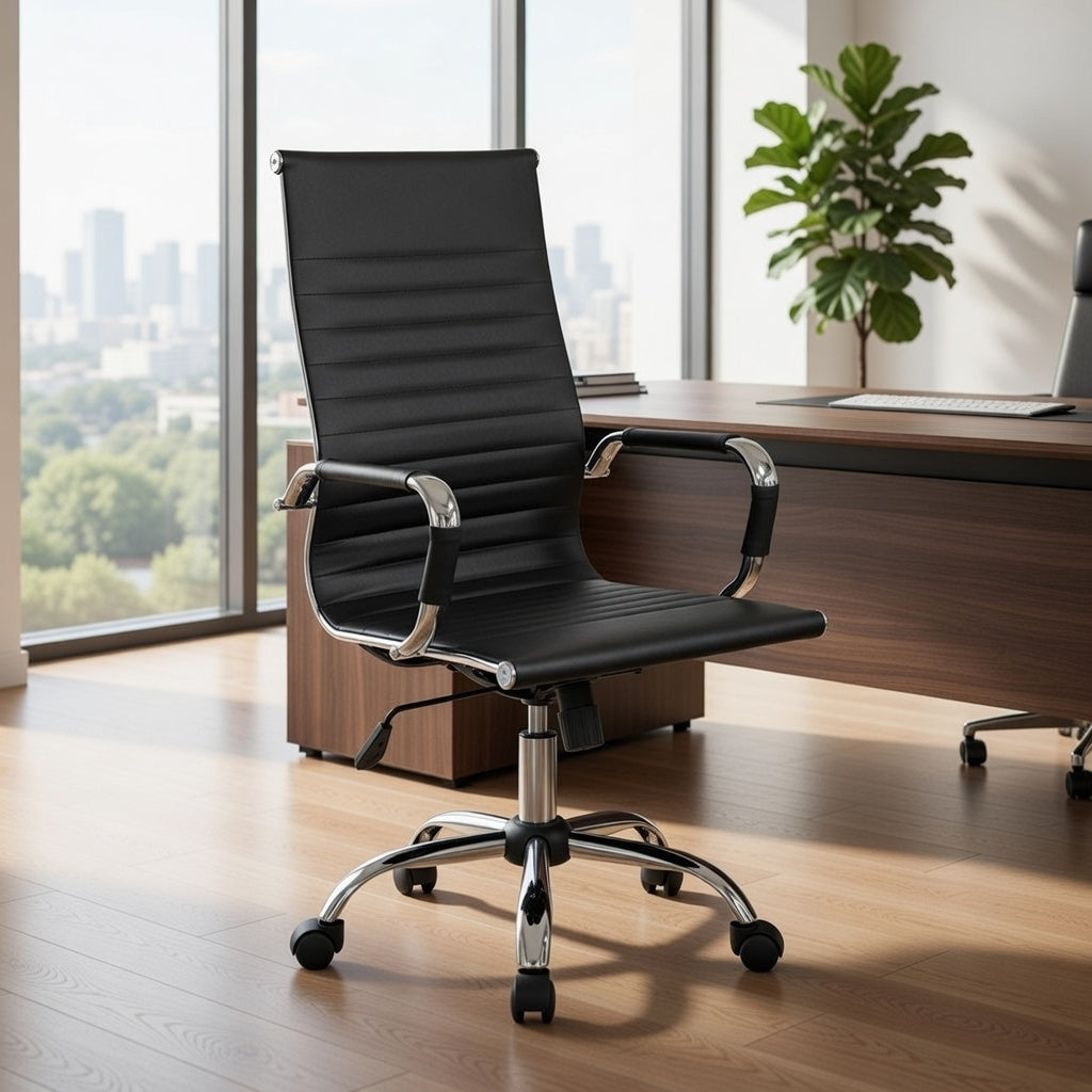 Chaise de bureau exécutive en similicuir noir Tosini Dallas